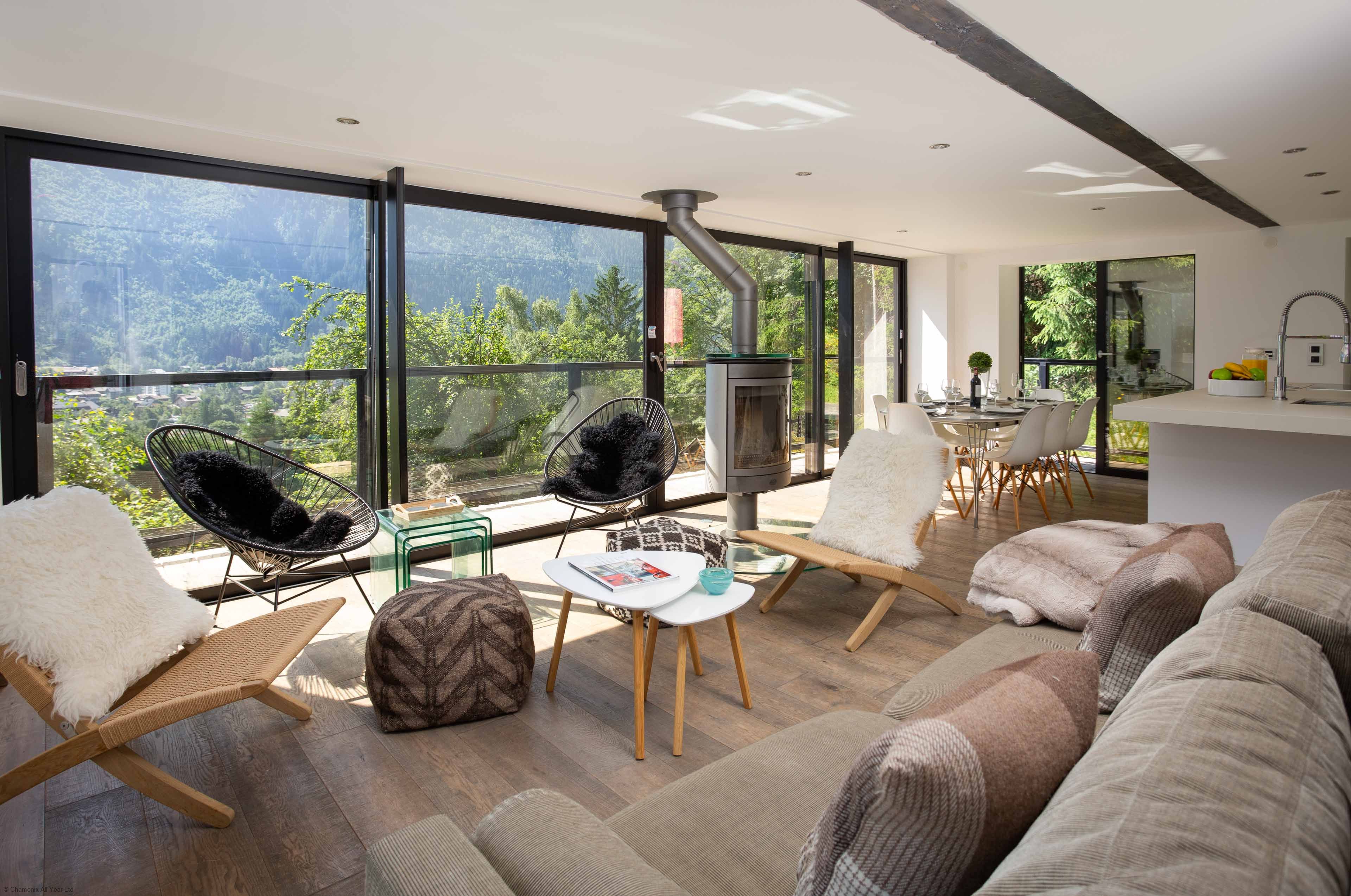 • Alpine setting with access to trails, shops, and Chamonix centre
