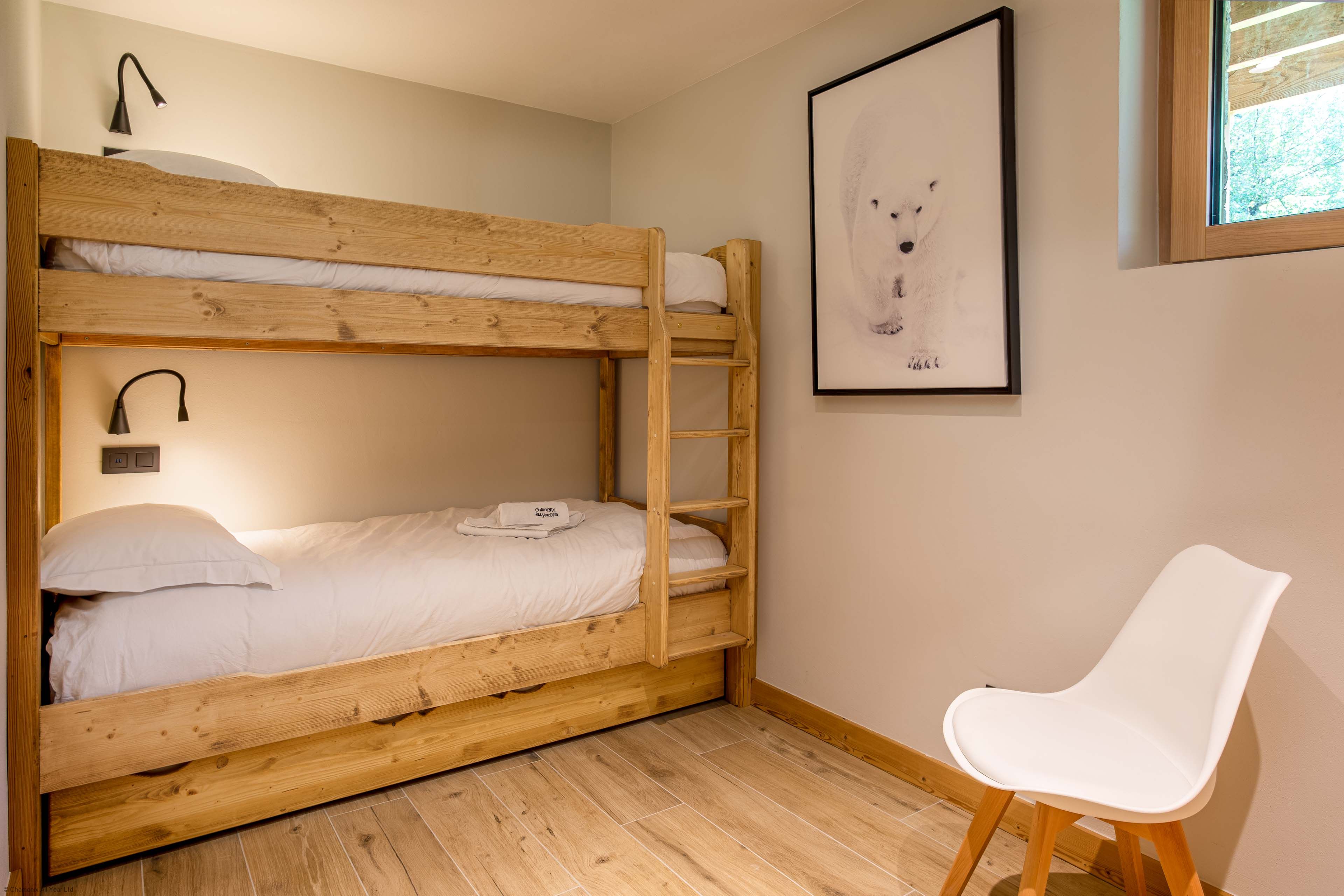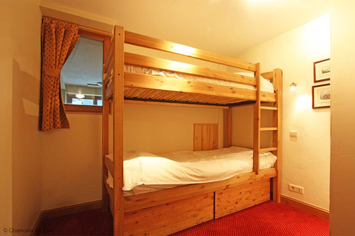 This chalet can sleep up to 8 people, with a mix of a double bed, single beds and bunk beds.