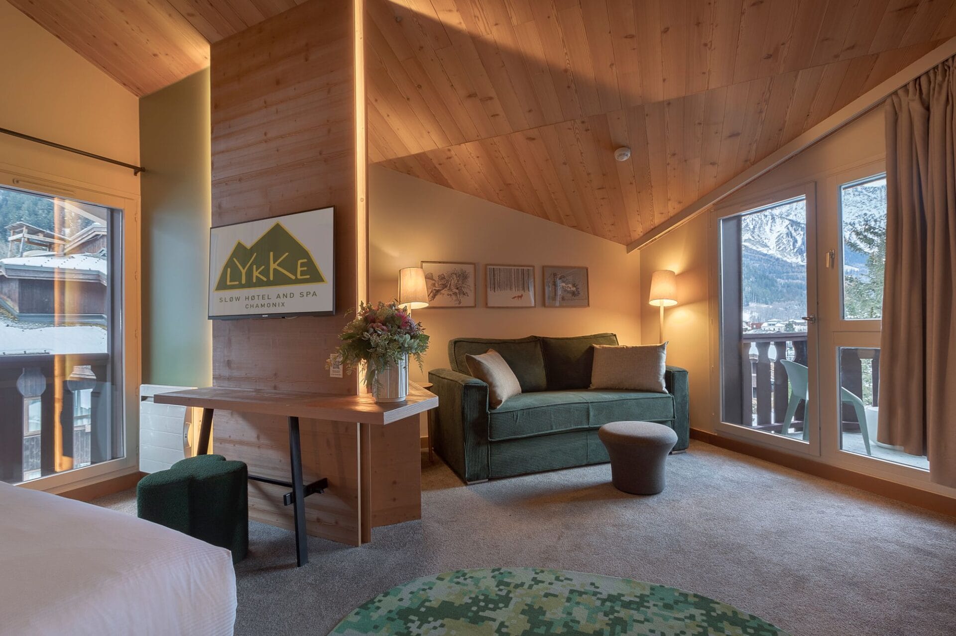 We use the 4 star Lykke Hotel Chamonix for athletes travelling to Hoka UTMB Mont Blanc who want to stay close to the action without feeling surrounded by it. Set just outside the busiest streets, it sits within easy walking distance of the start and finish area, making logistics refreshingly straightforward.